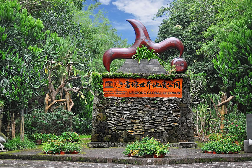 中國雷瓊世界地質(zhì)公園位于中國南端,地處廣東省湛江市雷州半島(雷)和海南省?谑校ō偅烧拷瓐@區(qū)、海口園區(qū)與瓊州海峽組成,面積為3050平方千米。公園地區(qū)多期次的火山噴發(fā)形成的獨(dú)特的地理、地質(zhì)環(huán)境,造就了公園廣闊的玄武巖臺(tái)地、豐富的火山地貌以及火山巖海蝕地貌與海積地貌等地質(zhì)遺跡景觀,也造就了當(dāng)?shù)鬲?dú)特的火山文化。公園以?隈R鞍嶺等為代表的第四紀(jì)火山帶聞名于世,更有以湖光巖為代表的瑪珥湖堪稱研究全球古氣候、古環(huán)境變化的“天然年鑒”。
