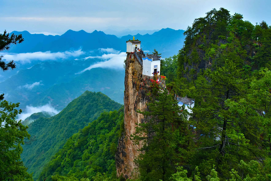 - 金頂觀音殿:始建于明朝,建在海拔1665.8米的絕壁之巔,三面懸空,僅靠4根石柱支撐,被譽為“天下最險道觀”,晨起云海環(huán)繞如臨仙境。
