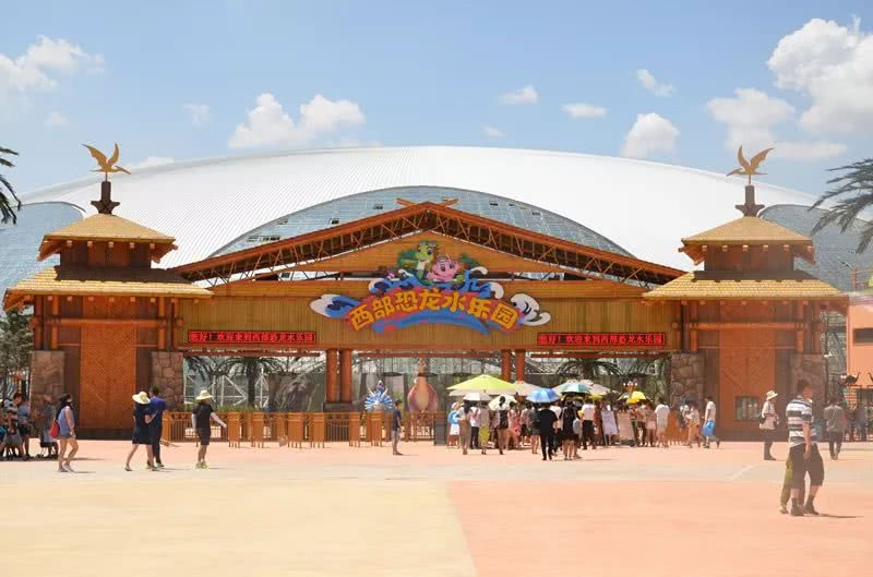 西部恐龍水樂園位于蘭州新區(qū)鳳凰山路1555號,總建設用地約2200畝,包含室內外兩大水樂園區(qū)域。室內水樂園采用28℃恒溫系統(tǒng)實現全年運營,配備歡樂島、加勒比海灘等17項國際化游樂設施;室外區(qū)域設有造浪池、叢林旋渦等12組水上游樂設備。園區(qū)以恐龍為主題,布置仿真模型及恐龍化石展品,兼具科普教育與娛樂功能。