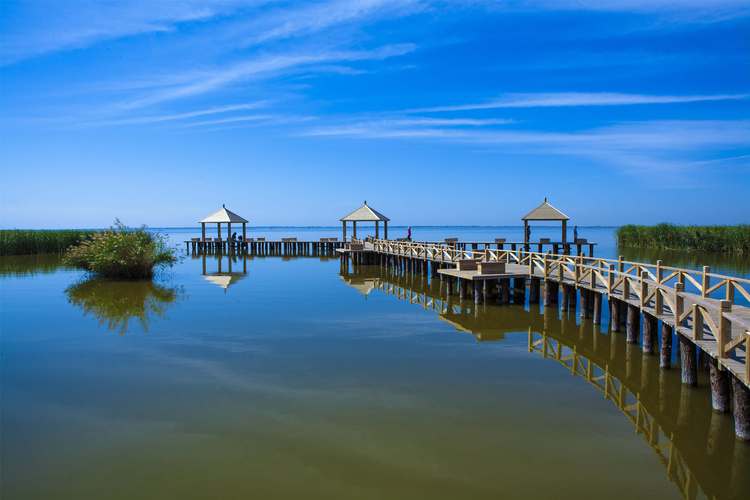 哈素海水質(zhì)肥沃,湖內(nèi)蘆葦叢生、鳥(niǎo)飛魚(yú)躍。岸邊涼亭水榭柳綠成蔭,碧水青山相映成輝,有"塞外西湖"之稱。置身哈素海,極目遠(yuǎn)眺,只見(jiàn)晴空碧水,蔚藍(lán)一色,蒲萍叢叢,你會(huì)覺(jué)得哈素海宛如已一副淡雅的水墨畫(huà)。如果你停舟湖中,看對(duì)對(duì)歐鳥(niǎo)翻飛底空,群群野鴨出沒(méi)葦叢,聽(tīng)遠(yuǎn)處高亢聊亮的漁歌,近旁魚(yú)躍出水波剌剌的 聲響,你會(huì)感覺(jué)到哈素海像一首詩(shī)。