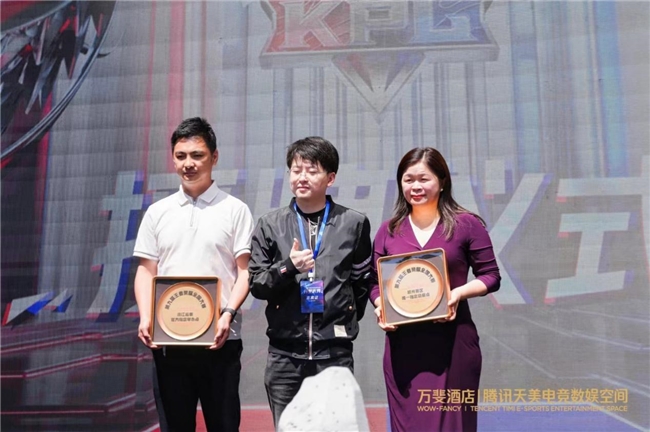 騰訊互娛天美L1工作室王者榮耀全國大賽負(fù)責(zé)人唐然上臺,授予了萬斐酒店騰訊天美電競數(shù)娛空間第九屆王者榮耀全國大賽——浙江省賽官方指定舉辦方,以及杭州賽區(qū)唯一指定總賽點的榮譽(yù)。由西湖文旅旅游發(fā)展有限公司副總經(jīng)理任亮,和上海歐愉科技總經(jīng)理史央清上臺接受授牌。