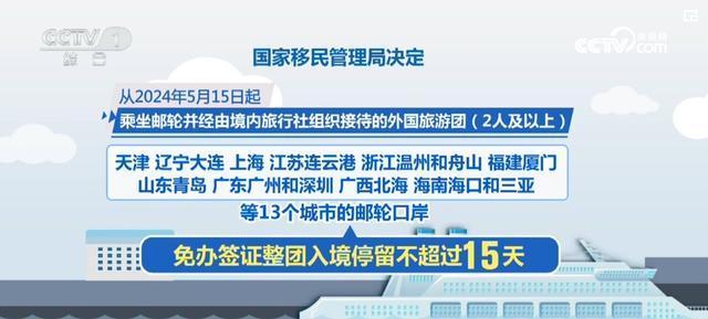 2024年5月15日起,乘坐郵輪并經(jīng)由境內(nèi)旅行社組織接待的外國旅游團(tuán)(2人及以上),可從天津、遼寧大連、上海、江蘇連云港、浙江溫州和舟山、福建廈門、山東青島、廣東廣州和深圳、廣西北海、海南?诤腿齺喌13個(gè)城市的郵輪口岸免辦簽證整團(tuán)入境停留不超過15天。旅游團(tuán)須隨同一郵輪前往下一港,直至本次郵輪出境,活動(dòng)范圍為沿海。ㄗ灾螀^(qū)、直轄市)和北京市! ∴]輪旅客“靠港即下、好來快走”