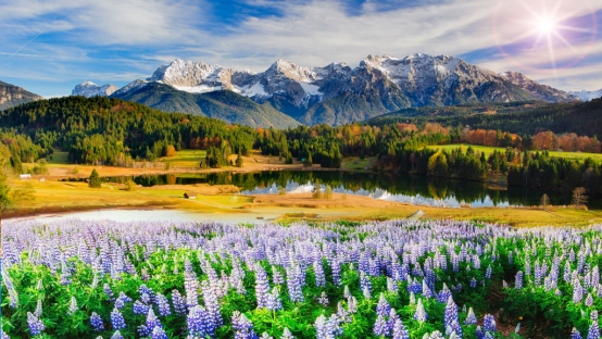 4.雪山濕地花海(雪山、濕地、花海,每一個(gè)景在這里都能看到。蜿蜒的溪流清澈見底,橫穿公園,澆灌著大片的牧草,木質(zhì)籬笆圍繞著牛群、馬群。溪流在有些地方會(huì)穿過木質(zhì)籬笆在外部流淌再流入濕地,使得人們可以近距離觸摸冰涼的溪流。)