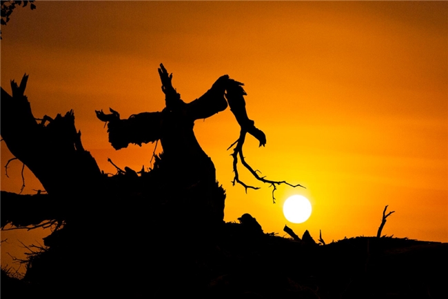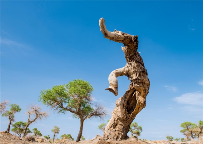 九千年胡楊,這里胡楊樹形也同樣奇特,有的胡楊猶如一頭大象,象鼻朝下吸水,象背馱著元寶自遠(yuǎn)處而來,為游客帶來吉祥和財(cái)富;有的胡楊春萌新芽,夏葉婆娑,秋金滿地,冬蘊(yùn)傲骨;有的胡楊就像古代的帝王莊嚴(yán)的祭祀著天地的生靈,祈求一方祥和,護(hù)佑一方安寧。