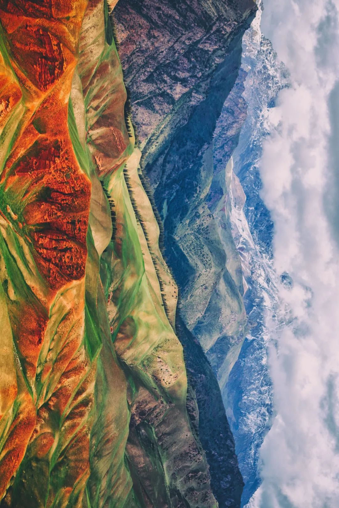 在西北干旱區(qū),從新疆、甘肅的戈壁綠洲到寧夏、陜北的黃土高原,億萬年以來沉積環(huán)境的變化造就了地層中不同化學元素的積累,顯現(xiàn)出深淺不一的色帶,地殼的構(gòu)造運動使得原本水平的地層發(fā)生不同角度的傾斜和抬升,流水的切割和風沙的吹蝕,將這些延綿不絕的彩色條帶暴露于地表,并斑駁成多種多樣的形態(tài)。
