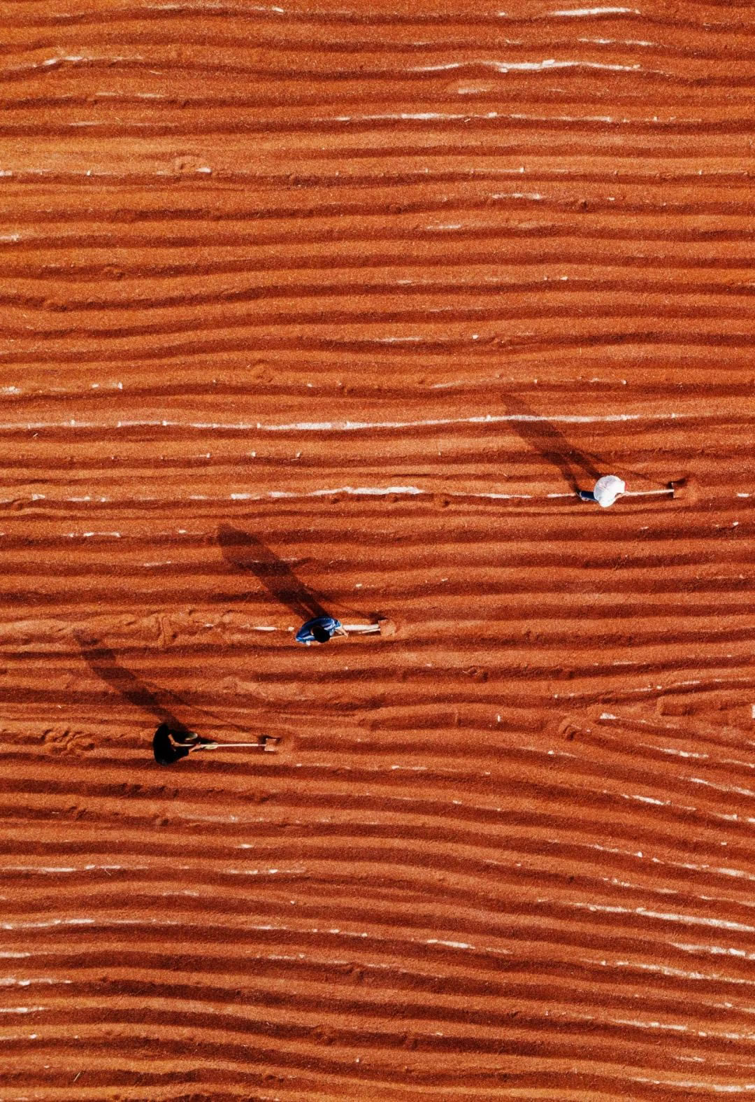 俯瞰紅層大地,猶如畫家恣意揮灑的畫作。或赤紅或斑斕的色彩,渲染出熱烈的氛圍。由于少有植被保護,紅色的巖層暴露在空氣中,因而經(jīng)常受到風化作用的剝蝕,永遠呈現(xiàn)出新鮮的紅色;哪貛СR姷募t柳,耐鹽,耐堿,耐干旱,根系可達地下30多米,給荒涼點染出生命的色彩。