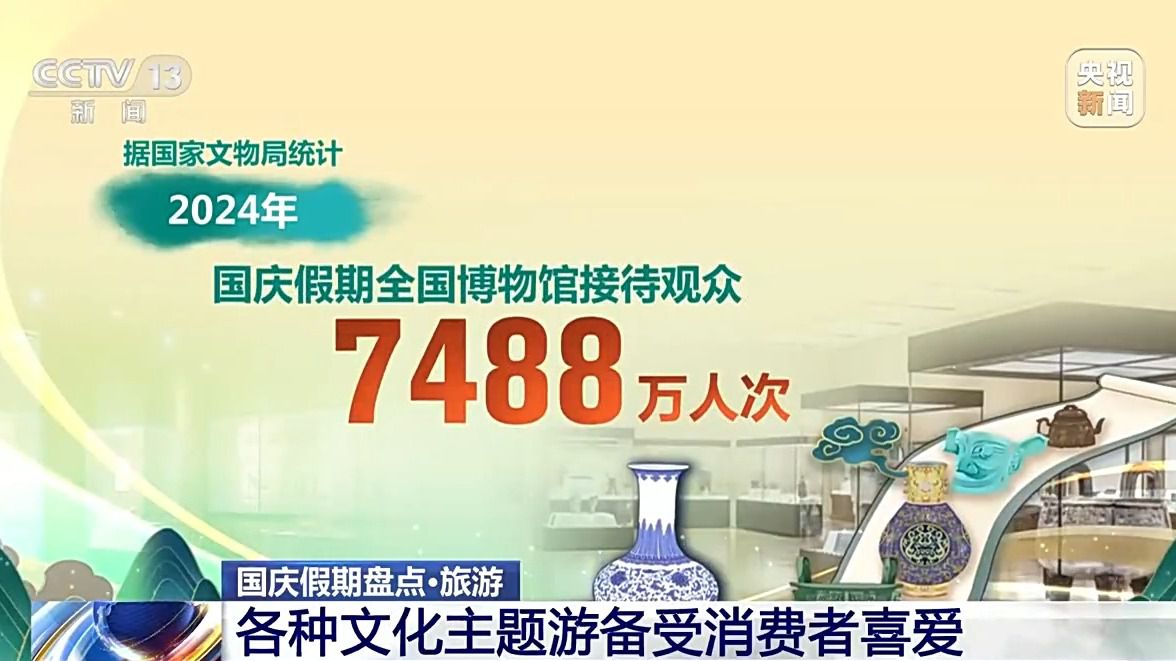這個(gè)國慶假期,文物古跡的歷史積淀、古街古鎮(zhèn)的人文魅力、國潮體驗(yàn)的今昔融合,悠悠文脈為旅行注入靈魂。網(wǎng)絡(luò)數(shù)據(jù)顯示,漢服旅拍、非遺體驗(yàn)、歷史名勝深度游覽等文化主題游備受消費(fèi)者喜愛。據(jù)國家文物局統(tǒng)計(jì),2024年國慶假期全國博物館接待觀眾7488萬人次。