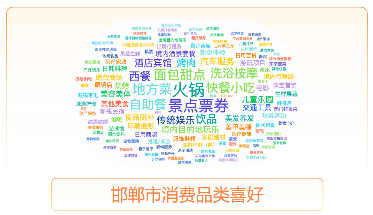 近期,邯鄲在文旅迸發(fā)出無(wú)限活力,暑期、春節(jié)出現(xiàn)了兩次明顯的交易高峰,主要表現(xiàn)在游玩、美食、休閑娛樂(lè)賽道,在TOP100商家中這些賽道占據(jù)了63.54%的交易份額,強(qiáng)勁的爆發(fā)系數(shù)讓我們看到了邯鄲文旅的巨大潛力。