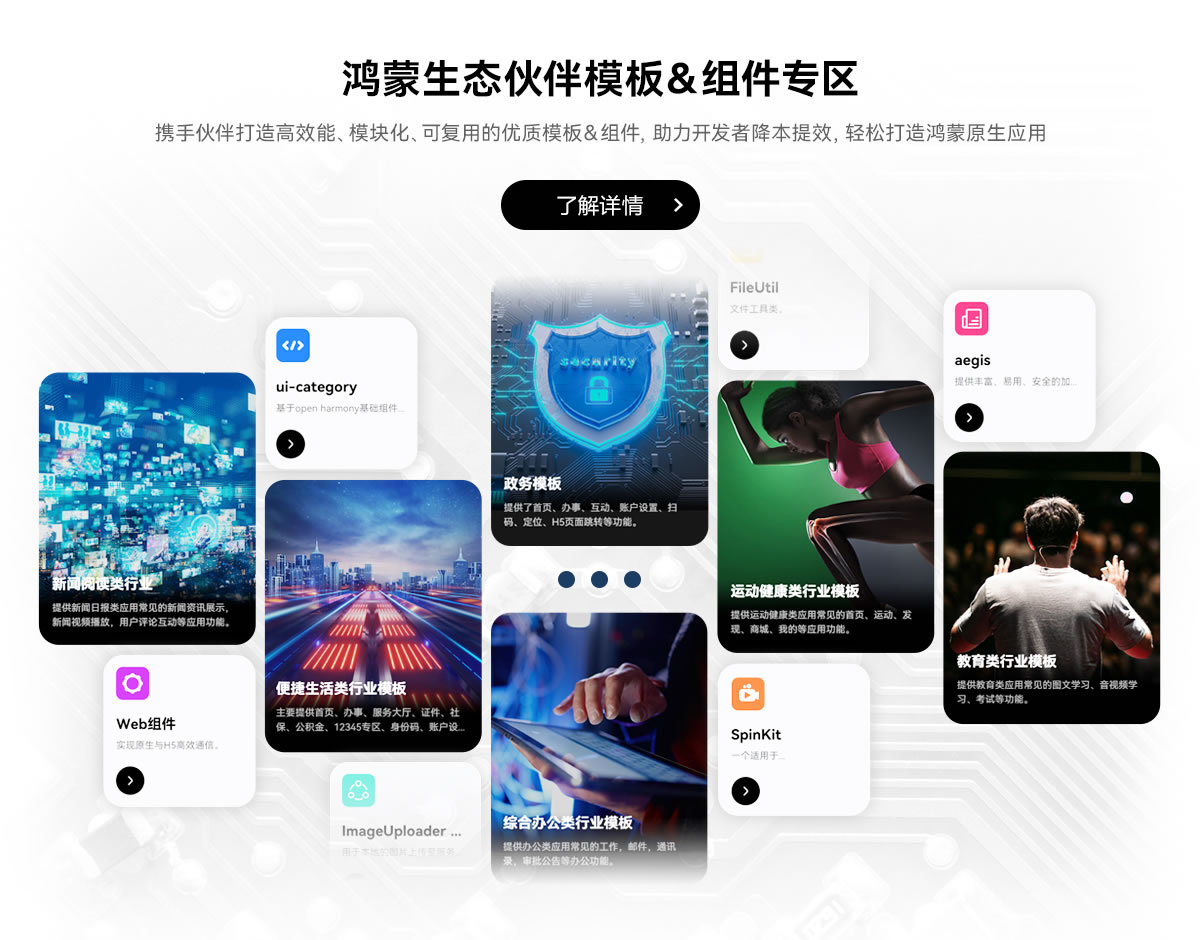隨著鴻蒙生態(tài)的蓬勃發(fā)展,更多的鴻蒙原生應用和元服務已成為推動其不斷前行的重要力量之一。為助力開發(fā)者更加高效地開發(fā)鴻蒙原生應用和元服務,10月中旬,華為開發(fā)者聯(lián)盟生態(tài)市場已上線“鴻蒙生態(tài)伙伴模板&組件專區(qū)”,匯聚官方及三方生態(tài)伙伴的優(yōu)秀行業(yè)開發(fā)模板和通用開發(fā)組件,助力開發(fā)者實現降本增效。