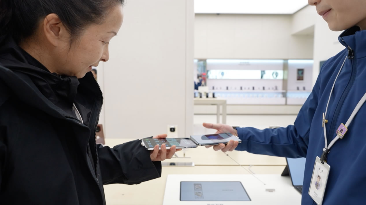 十一點,大家聚在一起頭腦風暴。張晴把方案資料共享給同事,照片、視頻、文件,甚至正在觀看的網(wǎng)站,都可以通過「華為共享」直接傳輸。面對面辦公就更方便了,兩臺手機「碰一碰」,傳送門就出現(xiàn)了。