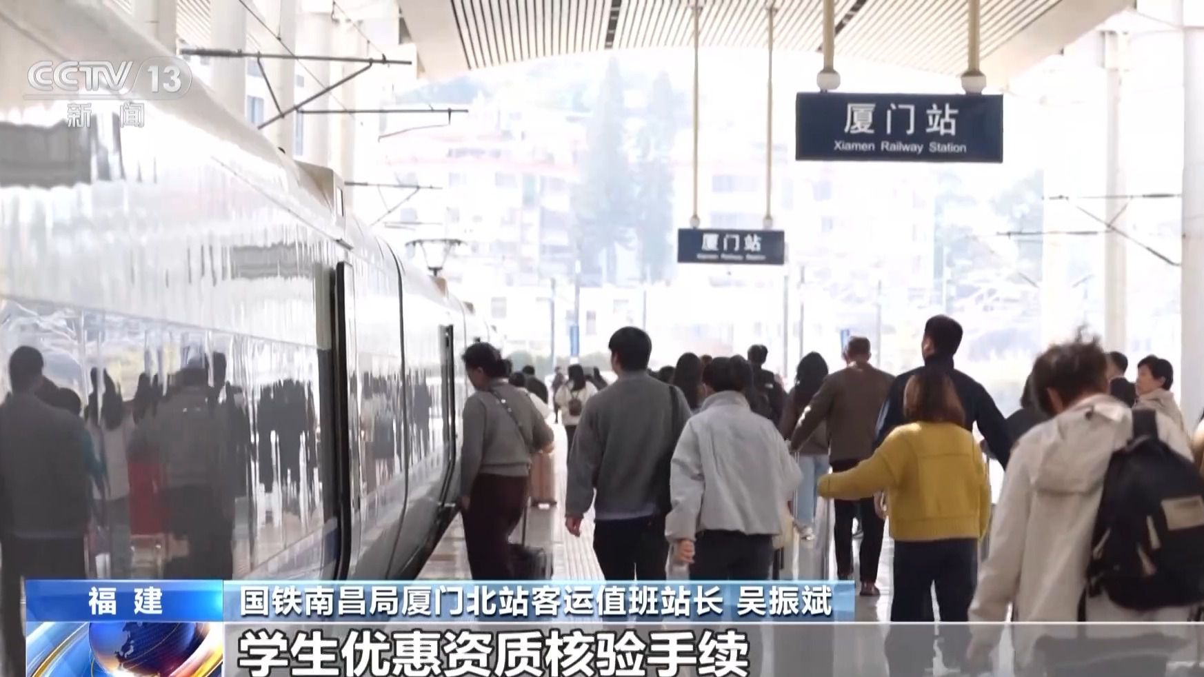 國鐵南昌局廈門北站客運值班站長 吳振斌:現(xiàn)在中國高等教育學生信息網(wǎng)和鐵路12306系統(tǒng)已實現(xiàn)信息對接,學生旅客每學年乘車前可通過鐵路12306App在線辦理學生優(yōu)惠資質(zhì)核驗手續(xù)。
