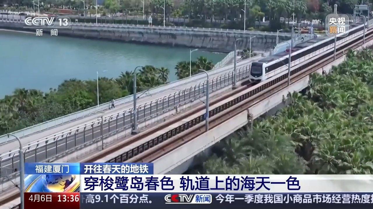 福建廈門(mén):穿梭鷺島春色 軌道上的海天一色