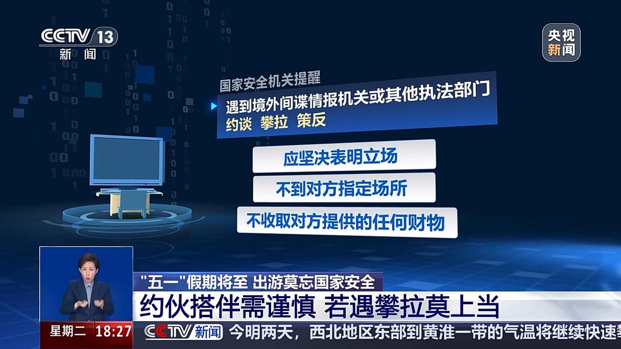遇到境外間諜情報(bào)機(jī)關(guān)或其他執(zhí)法部門約談、攀拉、策反,應(yīng)堅(jiān)決表明立場(chǎng),不到對(duì)方指定場(chǎng)所,不收取對(duì)方提供的任何財(cái)物,不簽署任何文件,不透露任何內(nèi)部信息,堅(jiān)持要求聯(lián)系我國駐外使領(lǐng)館尋求領(lǐng)事保護(hù)。