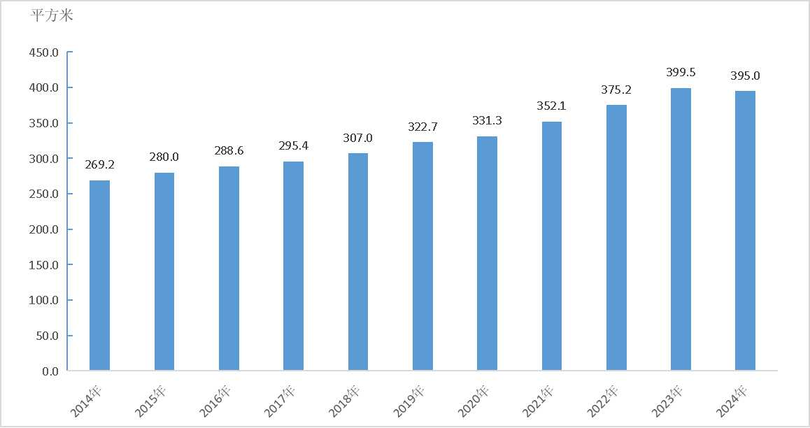 圖3:2014-2024年全國平均每萬人群眾文化設施建筑面積