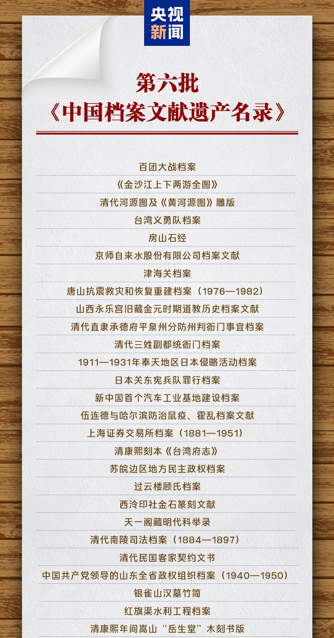 6月9日是國(guó)際檔案日。檔案,見(jiàn)證著歷史,傳承著文化。國(guó)家檔案局公布第六批《中國(guó)檔案文獻(xiàn)遺產(chǎn)名錄》,其中包括《百團(tuán)大戰(zhàn)檔案》《“重慶大轟炸”檔案》《紅旗渠水利工程檔案》《何尊等五組周代有銘青銅器》《銀雀山漢墓竹簡(jiǎn)》《廣交會(huì)創(chuàng)辦初期檔案(1956—1959)》《民族團(tuán)結(jié)誓詞碑檔案》等52個(gè)項(xiàng)目。
