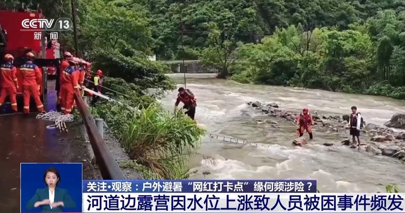 浙江寧波市消防救援支隊(duì)余盈:游客在水邊玩耍,對(duì)上游山洪的下降往往是聽不清、看不見的。提醒大家汛期不要在河道邊或者是干涸的河床上搭建營地,應(yīng)該盡量選擇地勢(shì)高、地面平坦堅(jiān)固、背風(fēng)的地方扎營。