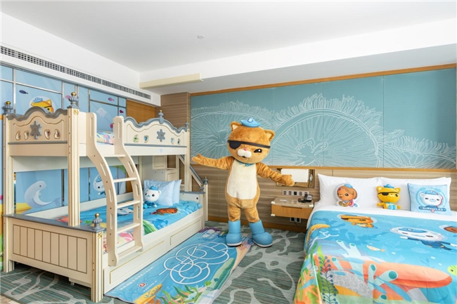 新推出的“海底小縱隊主題房”,以熱門動畫片《海底小縱隊》為藍本,結(jié)合動畫人物IP形象及海洋元素,設(shè)計了多種房型,為親子家庭打造了一個充滿童趣與探險氛圍的親子空間。
