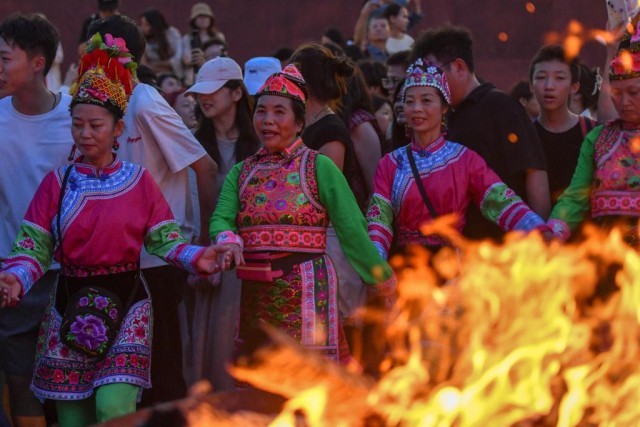 “不用懂專業(yè)舞步,跟著大家一起,怎么開心怎么跳!” 在大理州巍山縣拱辰樓廣場,躍動的篝火映紅了古老的城墻,來自西安的游客劉欣已融入當(dāng)?shù)貞c;鸢压(jié)的彝族打歌隊(duì)伍中。“打歌隊(duì)員帶領(lǐng)大家圍著篝火唱跳,簡直太開心了!”她說。