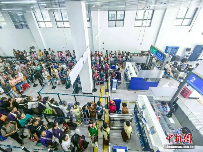 旅客在打洛口岸排隊(duì)候檢。打洛邊檢站 供圖