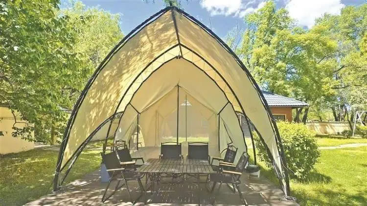 對不想費心準備的游客,露營基地是優(yōu)選;靥峁⿴づ癯鲎獾教张撁袼薜亩喾N住宿方案,帳篷價格98元至1980元不等,太空艙配淋浴、空調(diào)、智能馬桶,最多容4人入住。餐飲上,烤全羊、燒烤、現(xiàn)磨咖啡等齊全,無需游客自帶食材。針對不同群體,基地還提供精準服務(wù):為企業(yè)團建準備音響、投影;為孩子設(shè)置淘氣堡、泡泡屋并配專職看護;給愛唱歌的游客免費提供K歌設(shè)備,不少叔叔阿姨在此高歌,歡聲笑語度過一下午。