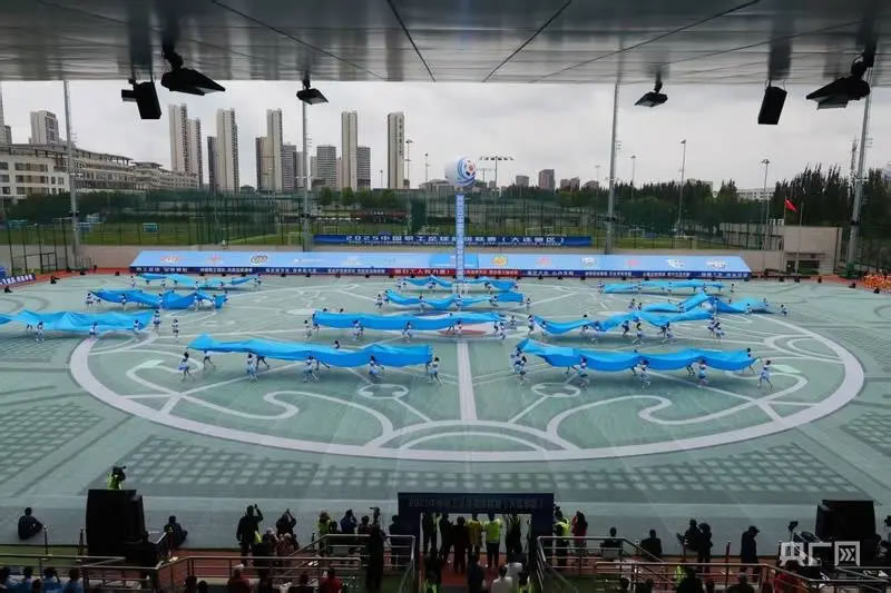 揭幕戰(zhàn)開始前,大連職工傾情演繹的主題表演《大海啊故鄉(xiāng)》,成為表演節(jié)目中的一抹亮色,舞臺上藍色海浪涌動,職工青春的活力與濱城的海韻完美交融,將開放包容的城市氣質(zhì)化作澎湃的視覺交響,藝術化呈現(xiàn)了大連職工足球發(fā)展的歷史。健排舞《我愿全速奔向你》,原創(chuàng)舞蹈《大連雄風》,歌舞表演《奔跑》等節(jié)目充分展示了大連城市發(fā)展活力和開放文明新形象,展現(xiàn)了大連職工昂揚向上、積極進取的精神風貌。伴隨著激昂的樂曲,來自大連市實驗小學和沙河口區(qū)東北路小學兩所國內(nèi)知名足球特色學校的孩子們,帶來了精彩的顛球表演,孩子們個個精神抖擻、技藝嫻熟,把現(xiàn)場的氛圍推向高潮。
