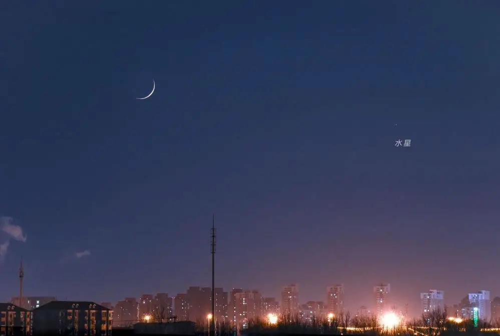 2022年1月7日水星東大距,這是同年1月4日在天津東麗區(qū)拍攝的水星和月亮。(楊婧 攝)