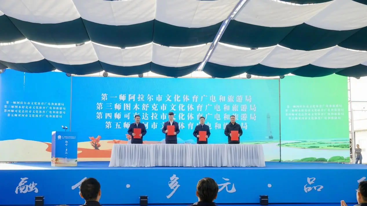 當(dāng)天,第一師阿拉爾市旅游發(fā)展大會(huì)暨第三屆塔里木文化旅游節(jié)文旅客商推介會(huì)同步舉辦。第一師阿拉爾市文化體育廣電和旅游局分別與第三師圖木舒克市、第四師可克達(dá)拉市、第五師雙河市的文化體育廣電和旅游局簽署合作共建協(xié)議,在旅游產(chǎn)業(yè)領(lǐng)域深化合作,推動(dòng)區(qū)域文旅協(xié)同發(fā)展。第一師阿拉爾市文化體育廣電和旅游局、塔里木文旅集團(tuán),以及第一師四團(tuán)、七團(tuán)、十六團(tuán)依次登臺(tái),重點(diǎn)推介了涵蓋沙漠探險(xiǎn)、生態(tài)觀光、民俗體驗(yàn)等多個(gè)領(lǐng)域的文旅項(xiàng)目。