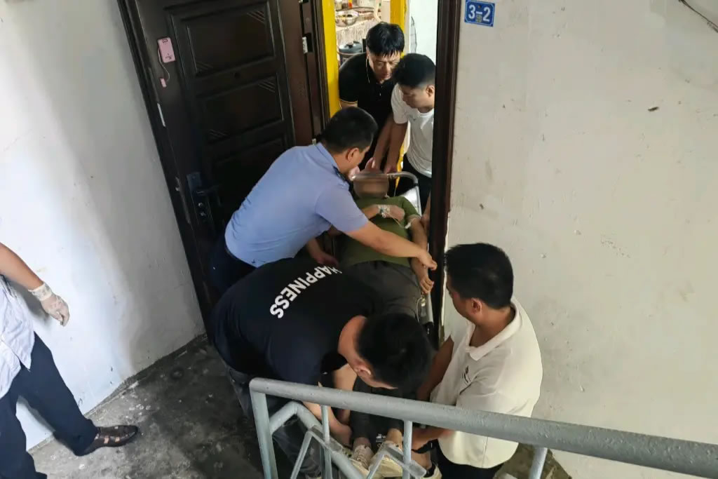 江津區(qū)男子家中暈倒民警破門搶回生機(jī)同日,江津區(qū)德感派出所接到市民張女士求助,其弟弟在家中暈倒,房門反鎖。民警立即聯(lián)系開鎖師傅破門而入,發(fā)現(xiàn)男子已昏迷,口鼻有血漬,呼吸微弱。民警迅速協(xié)助趕到的120急救人員將男子送醫(yī)。經(jīng)診斷,該男子疑似腦溢血,經(jīng)搶救已暫時(shí)脫離生命危險(xiǎn),F(xiàn)場(chǎng)醫(yī)生表示,若再晚半小時(shí)后果不堪設(shè)想。