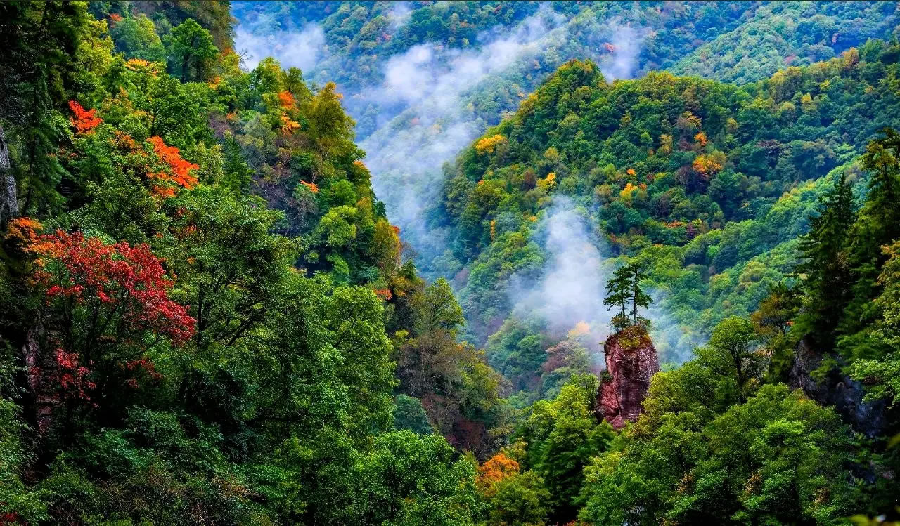 山河入秋,大地鎏金。走進(jìn)國家級風(fēng)景名勝區(qū)甘肅華亭關(guān)山蓮花臺(tái),仿佛走進(jìn)了五顏六色的童話世界——層林盡染,五彩繽紛,秋意在這里揮灑得淋漓盡致?諝庵懈(dòng)著泥土的溫潤與草木的清香,山間那些不知名的野花依然開得爛漫,如散落的星辰點(diǎn)綴林間。