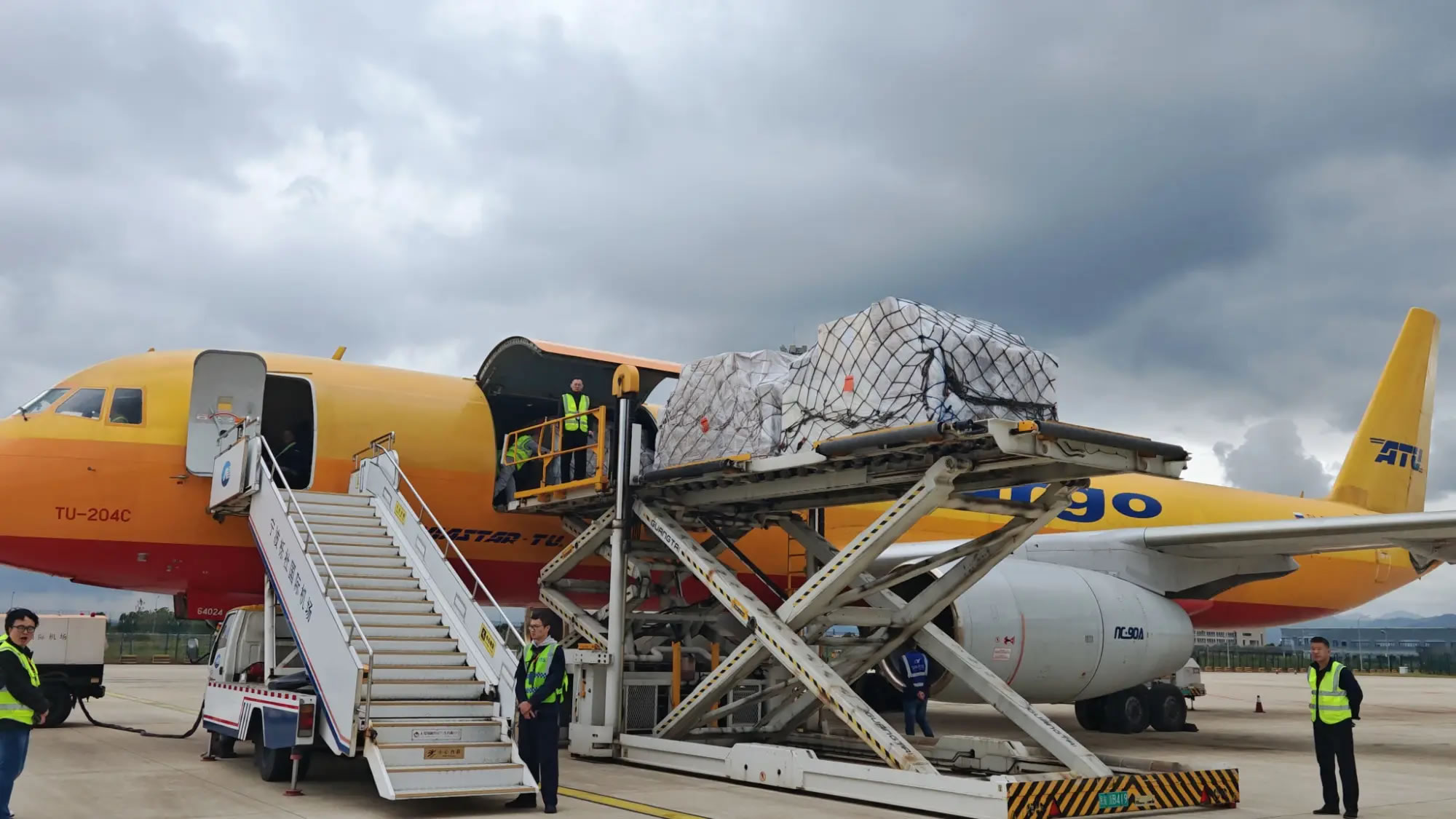 TU204C全貨機裝貨現(xiàn)場(央廣網(wǎng)發(fā) 寧波機場供圖)