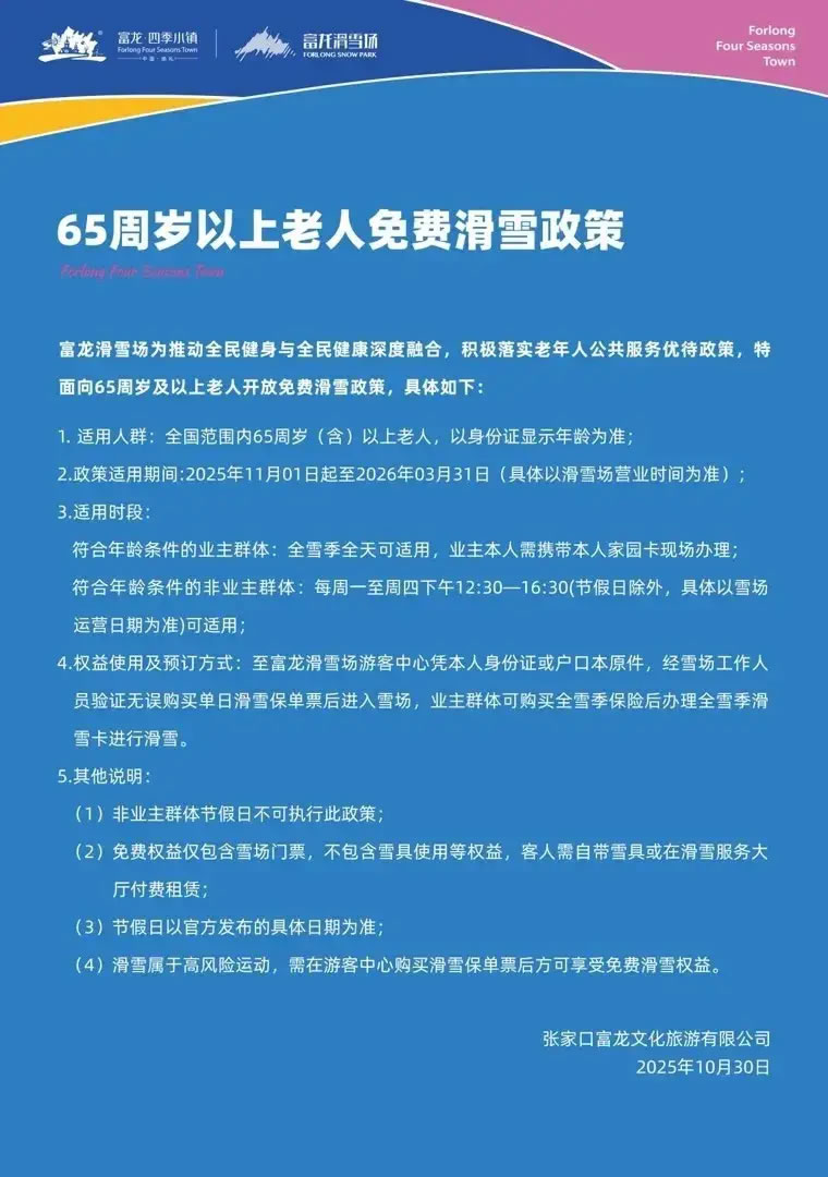 記者查詢發(fā)現(xiàn),張家口其他滑雪場也有推出針對(duì)老年群體的優(yōu)惠政策,包括滑雪半價(jià)或免費(fèi)。