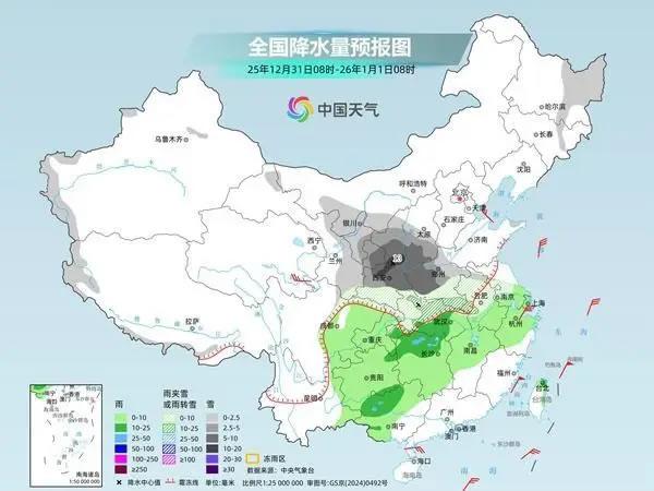 在這輪跨年雨雪過程中,甘肅東部、陜西中南部、山西南部、河南西部、湖北西北部等地為降雪核心影響區(qū)域,上述地區(qū)新增積雪深度可達(dá)2至10厘米,局地或超10厘米。正值元旦前后,福銀高速、包茂高速、連霍高速等部分路段可能出現(xiàn)積雪、結(jié)冰現(xiàn)象,公眾需警惕道路濕滑、能見度降低等對出行的不利影響,駕車外出請保持距離、減速慢行,注意交通安全。