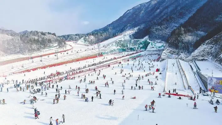 熱鬧的滑雪場現(xiàn)場。(湖北日報全媒記者 劉毅 通訊員 周瑾 攝)