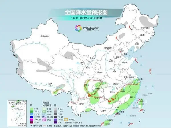 今天,雨雪范圍將明顯縮小,預(yù)計新疆南疆西部山區(qū)、西藏西部和北部、青海北部、甘肅河西、內(nèi)蒙古東部、黑龍江中東部、遼寧南部、湖北西南部、安徽南部、浙江西北部等地部分地區(qū)有小雪或雨夾雪,其中,新疆南疆西部山區(qū)等地部分地區(qū)有中到大雪;貴州西部、湖南南部和廣西北部高海拔山區(qū)局地有凍雨。西南地區(qū)東部、江南中東部及廣東中東部、海南島、臺灣島等地部分地區(qū)有小雨。