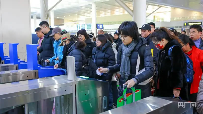 春運首日呼和浩特火車東站旅客檢票進(jìn)站(央廣網(wǎng)記者 楊亞東 攝)