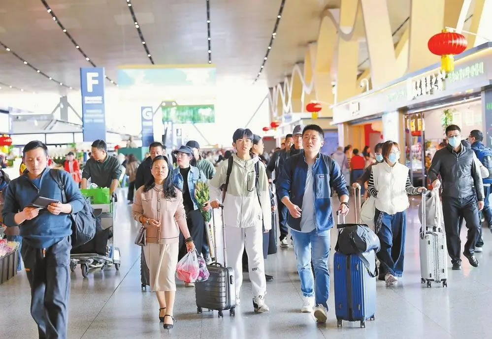 2月23日,昆明長水國際機(jī)場迎來返程客流高峰。記者 黃興能 攝