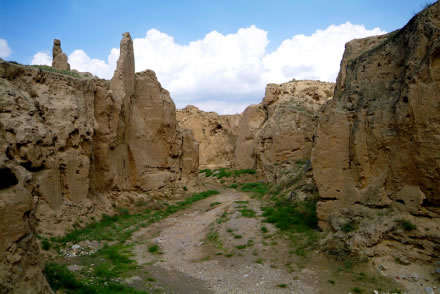 從水洞溝到紅山堡之間,有長約4公里的峽谷,本是大自然的“杰作”,但明代時,這又成了長城“深溝高壘”防御體系的重要組成部分。峽谷兩岸經(jīng)常年的風(fēng)雨剝蝕,溝壑縱橫,深厚的黃土經(jīng)長期的雨水沖刷,土柱突兀壁立,造型奇特,形成了“土林”!巴亮帧庇纸(jīng)大自然鬼斧神工雕琢般地形成千奇百怪的形像。有的像僧人登高遠(yuǎn)眺,似在期待來者;有的宛如一對戀人,相親相依;有的如夫妻相敬,雙方對拜,琳琳總總,各具形態(tài),給人以無盡的遐想。在峽谷的兩邊的崖壁上有明代將士修建的藏兵洞,它充分顯示了古代人民的軍事智慧和聰明才智。