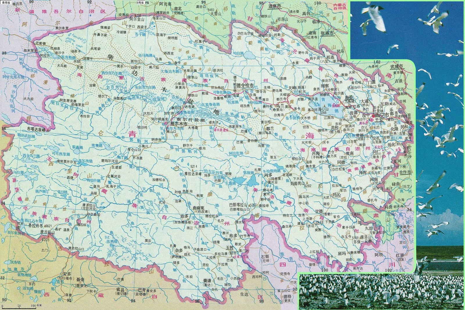 行政區(qū)劃:省內(nèi)行政區(qū)劃為3個市,6個自治州,1個地區(qū)公署,47個縣。 |