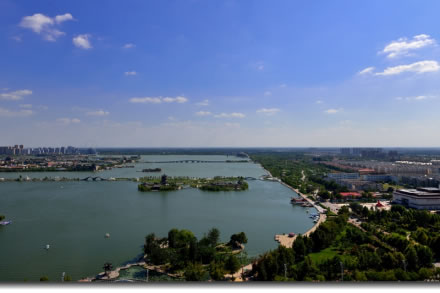 國家4A級旅游區(qū)、山東省重點服務(wù)業(yè)園區(qū)、山東省生態(tài)漁業(yè)示范園、國家垂釣基地,也是“江北水城·運河古都——生態(tài)聊城”城市品牌的核心區(qū)域。位于聊城市中心城區(qū),由10個湖區(qū)和20塊水面組成,總面積6.3平方千米,湖岸線長達16千米,有“南有西子,北有東昌”之美譽,是中國江北地區(qū)罕見的大型城內(nèi)湖泊。東昌湖湖始于北宋熙寧三年(1070年),水深平均達3米,最深處5米。水質(zhì)清澈,景色宜人,適宜水上游樂項目的開發(fā)與建設(shè)。