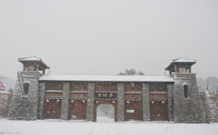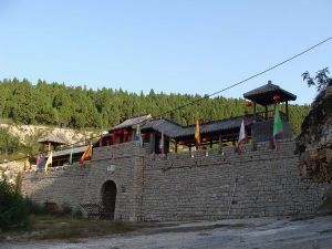 落在山勢(shì)險(xiǎn)峻,谷深崖陡、植被茂密的雄偉攔谷建筑就是“二關(guān)”,該建筑為邊關(guān)哨卡式建筑,寨墻和大門(mén)為全石結(jié)構(gòu),因?yàn)槭墉h(huán)境、條件限制,北宋時(shí)期義軍用干碴砌壘,占地面積200多平方米,長(zhǎng)40余米,高8米,寬3.5米,該建筑卡谷而立森嚴(yán)壁壘,旗掩霸寨,由插翅虎雷橫把守。