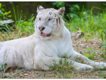 白虎領(lǐng)地展區(qū)位于車入?yún)^(qū),展區(qū)模擬白虎原生態(tài)的生存環(huán)境。白虎是白化的孟加拉虎,眼睛通常是藍色或琥珀色,鼻子粉紅色,皮毛或奶油色,條紋有黑色、灰色或巧克力色。