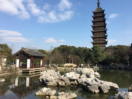 從東大門進(jìn)園,首先看到竹林和竹林上露出的塔尖,頗引人入勝。這批竹園是在舊時(shí)私人住宅的小竹園基礎(chǔ)上擴(kuò)建而成。