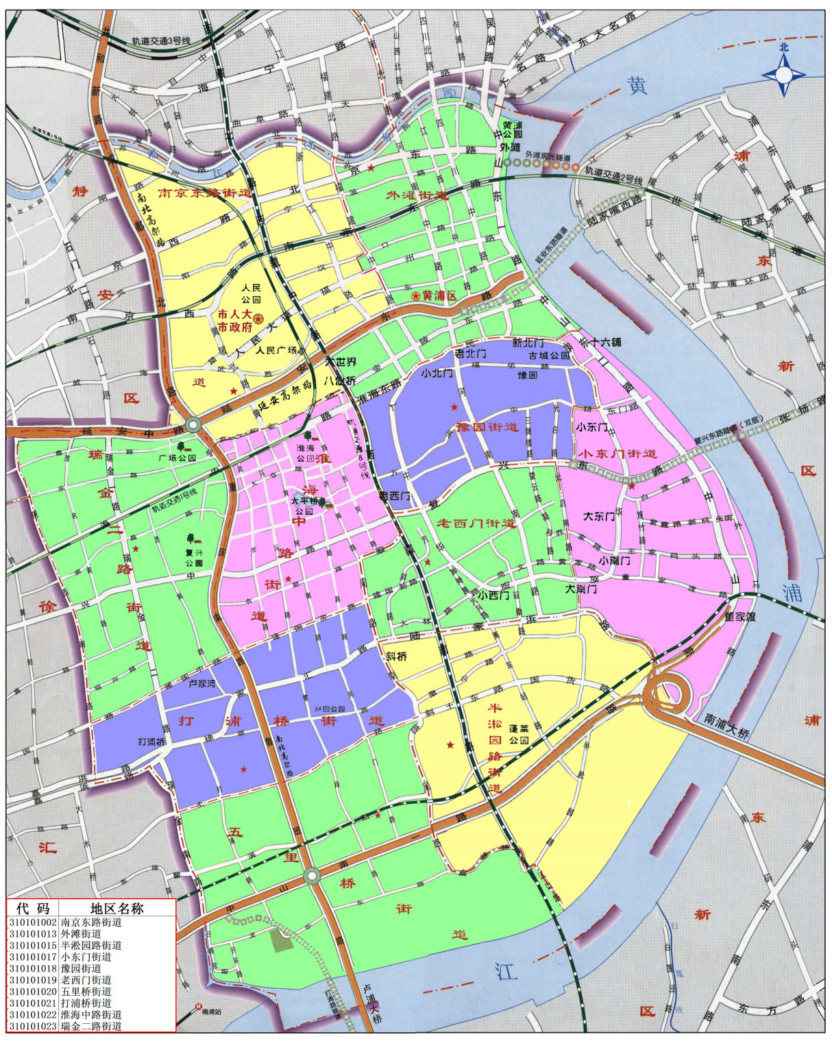 黃浦區(qū)轄10個(gè)街道:南京東路街道、外灘街道、瑞金二路街道、淮海中路街道、豫園街道、打浦橋街道、老西門街道、小東門街道、五里橋街道、半淞園路街道