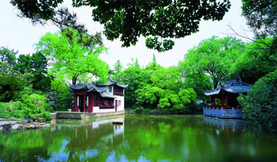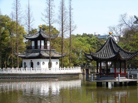 是一座具有獨(dú)特風(fēng)格的明代園林,由明代龔氏園、沈氏園、金氏園和城隍廟合并而成,為上海五大古典園林之一。秋霞圃以清水池塘為中心,石山環(huán)繞,古木參天,造園藝術(shù)獨(dú)特,分桃花潭、凝霞閣、清鏡堂、邑廟等四個(gè)景區(qū)。桃花潭景區(qū)的池上草堂,有“一堂靜對(duì)移時(shí)久,勝似西湖十里長(zhǎng)”的贊譽(yù)。凝霞閣景區(qū)的“環(huán)翠軒”軒西有復(fù)廊式“碑廊”,上集明清碑刻17方。從西門(mén)入園,院內(nèi)森桂軒的四周遍植桂樹(shù);軒南置明代遺物“三星石”,分別取名“福、祿、壽”;園內(nèi)還有一“涉趣橋”,建于民國(guó)十年(1921年),連接曲徑北岸,橫跨幽泉清溪。