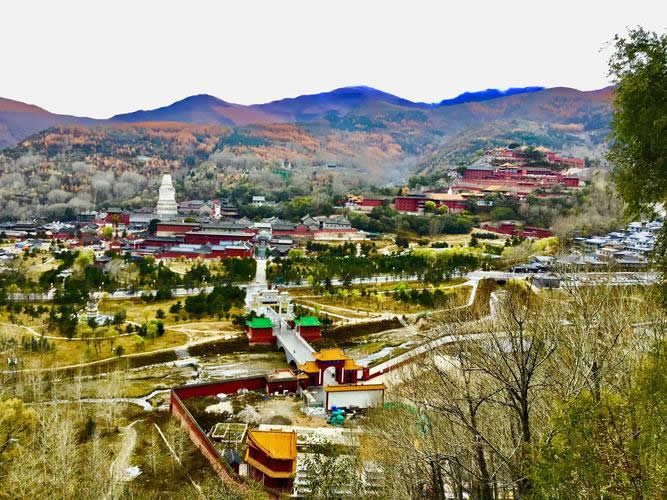 五臺山位居中國四大佛教名山之首,稱為“金五臺”,為文殊菩薩的道場。五臺山并非一座山,它是坐落于“華北屋脊”之上的一系列山峰群,最高海拔3061米。五座山峰(東臺望海峰、南臺錦繡峰、中臺翠巖峰、西臺掛月峰、北臺葉斗峰)環(huán)抱整片區(qū)域,頂無林木而平坦寬闊,猶如壘土之臺,故而得名。五臺山是中國唯一一個青廟(漢傳佛教)黃廟(藏傳佛教)交相輝映的佛教道場,現(xiàn)存宗教活動場所共86處,其中多敕建寺院,多朝皇帝前來參拜。著名的有:顯通寺、塔院寺、菩薩頂、南山寺、黛螺頂、廣濟寺、萬佛閣等。