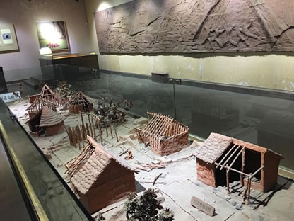 出土文物陳列由第一展室和第二展室組成,兩個(gè)陳列室陳列的是從遺址中發(fā)掘出來(lái)的生產(chǎn)工具和生活用品。