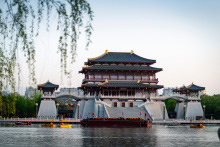 大唐芙蓉園,位于陜西省西安市雁塔區(qū)大雁塔東南側,占地面積1000畝,其中水域面積300畝。大唐芙蓉園是在原唐代芙蓉園遺址以北,仿照唐代皇家園林式樣重新建造的,是中國第一個全方位展示盛唐風貌的大型皇家園林式文化主題公園。