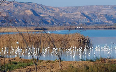 洽川地處我國(guó)候鳥(niǎo)南北遷徙的中軸線上,大片的黃河灘涂是鳥(niǎo)類的樂(lè)園。這里水源充足,魚(yú)蝦豐富,蘆葦茂密,氣候濕潤(rùn),每年10月至來(lái)年4月,都會(huì)有丹頂鶴、白天鵝、大鴇、灰鶴等70余種國(guó)家保護(hù)的一二級(jí)鳥(niǎo)類來(lái)此越冬,而黑鸛、蒼鷺、鴛鴦以及赤麻鴨等40余種留鳥(niǎo)則常年在這里繁衍生息,為洽川增添了無(wú)限生機(jī)。