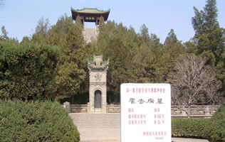 “為冢象祁連山”。元狩六年(前117年),24歲的大司馬驃騎將軍霍去病去世,謚號景桓侯。漢武帝對霍去病的死非常悲傷,他調來玄甲軍,列成陣沿長安一直排到茂陵霍去病墓地。其冢象“祁連山”,以表彰他的不朽功勛;羧ゲ∧沟撞磕媳遍L101.50米,東西寬73米。頂部南北長15米,東西寬8米,占地面積5841.33平方米,封土體積62961.24立方米。墓冢上下,墓地周圍,亂石嶙峋,蒼松翠柏,蔭蔽墓身,一派山林幽深景象。墓南、北面東西兩角,各有回欄曲徑,通向墓頂,成為國家首批“AAAA”級旅游景區(qū)。