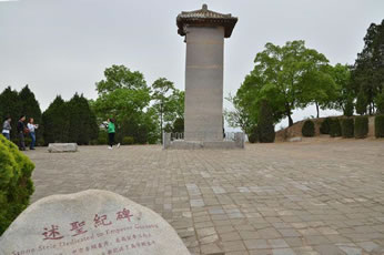 無(wú)字碑北靠東闕,南依翁仲,西與述圣紀(jì)碑相對(duì),巍峨壯觀,雕刻精美,為歷代群碑之冠。